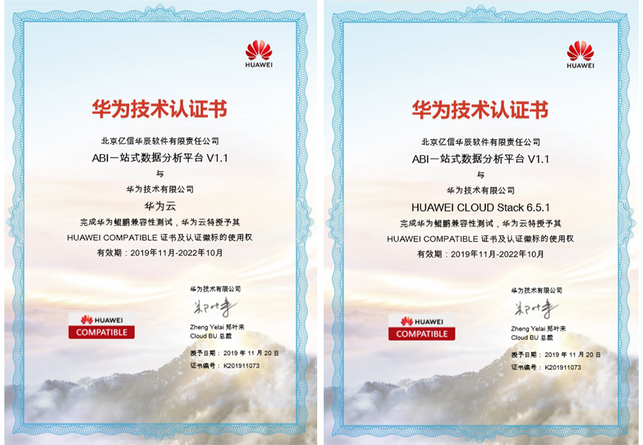億信ABI通過華為公有云、私有云兼容性測試