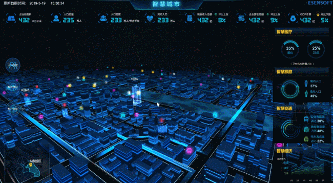 億信ABI內(nèi)置上百種可視化元素和特效組件,可搭配出成千上萬(wàn)種可視化效果,更有獨(dú)特的3D全景視覺(jué),能隨意制作出炫酷的大屏。