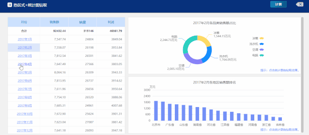 億信ABI能做的圖表分析是Excel無(wú)法實(shí)現(xiàn)的高級(jí)功能,比如:圖表鉆取。當(dāng)你點(diǎn)擊圖表中的某一個(gè)數(shù)據(jù),讓圖標(biāo)跳轉(zhuǎn)展示點(diǎn)擊數(shù)據(jù)的更詳細(xì)的數(shù)據(jù)。逐層下鉆的功能,將匯總的數(shù)據(jù)逐次展示到細(xì)節(jié)數(shù)據(jù)進(jìn)行觀察,清晰明了。