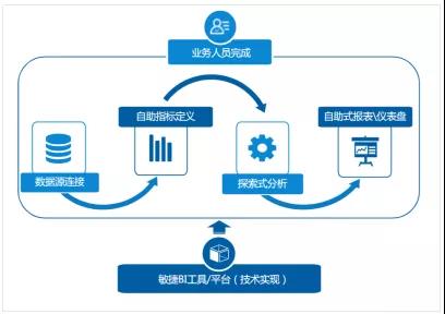 ? 敏捷的數(shù)據(jù)分析和快速響應(yīng)能力。自助式BI的業(yè)務(wù)流程中,業(yè)務(wù)人員可以自助式的實(shí)現(xiàn)數(shù)據(jù)源連接、指標(biāo)集定義、探索式分析、高效查詢和自助的報(bào)表制作和儀表盤展示,即時(shí)響應(yīng)需示變化,并可實(shí)現(xiàn)信息共享。
